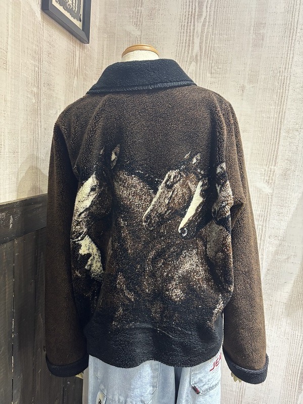 CANADA製 90s OUTBACK TRADING COMPANY アニマル ホース プリント コンチョボタン フリース ボア 短丈 ショート丈 ジャケット