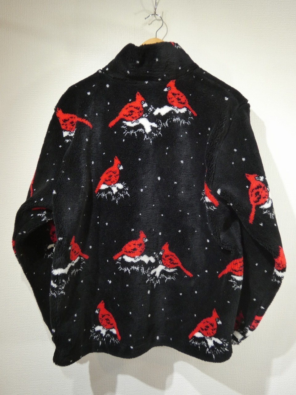 USA製 90s BLACK MOUNTAIN ショウジョウコウカンチョウ プリント ボアフリース ブルゾン ジャケット